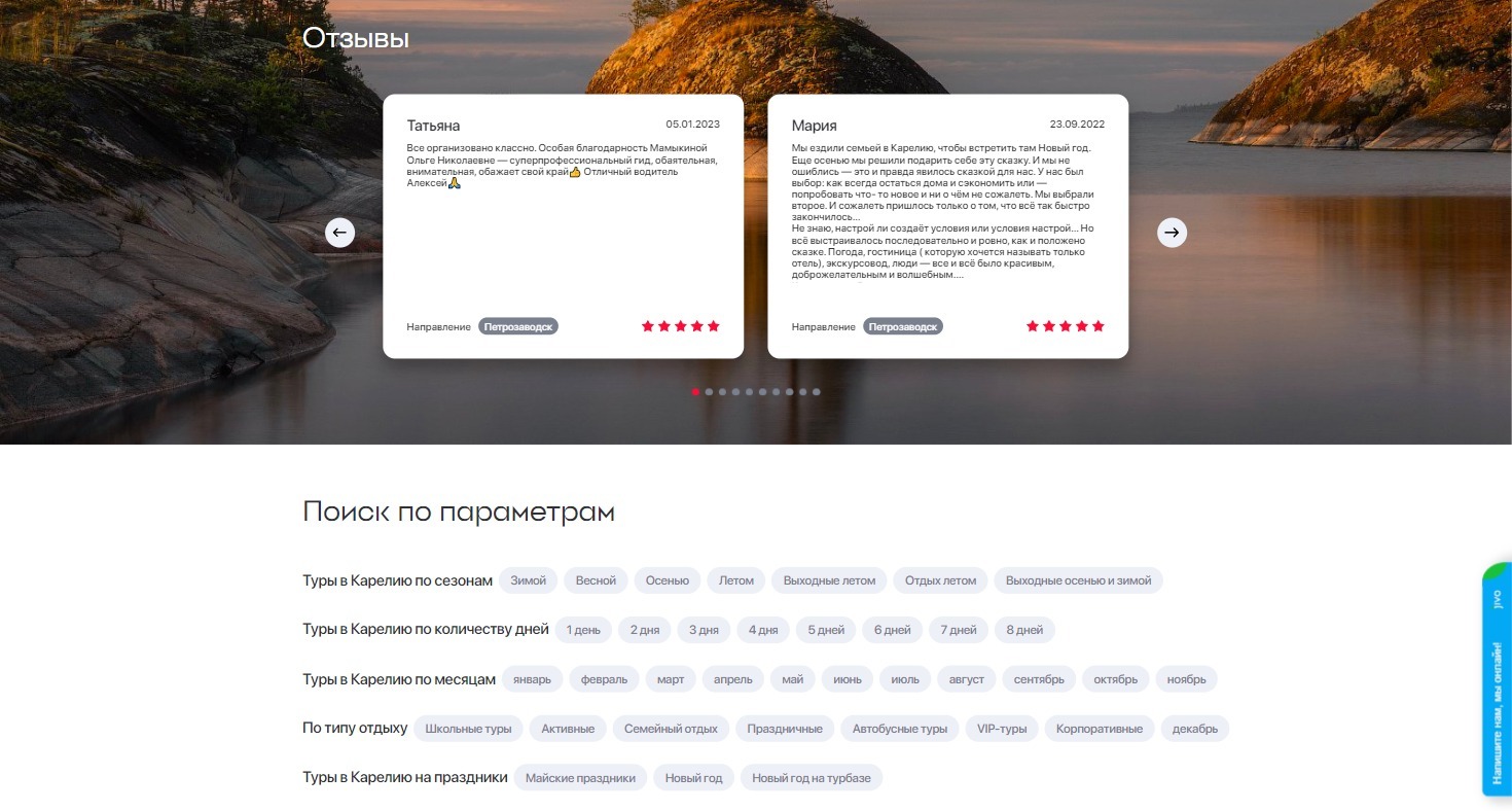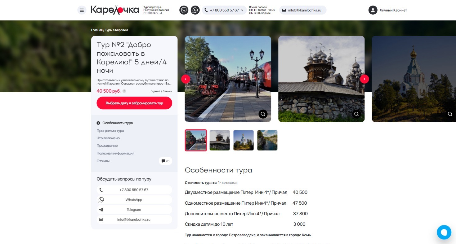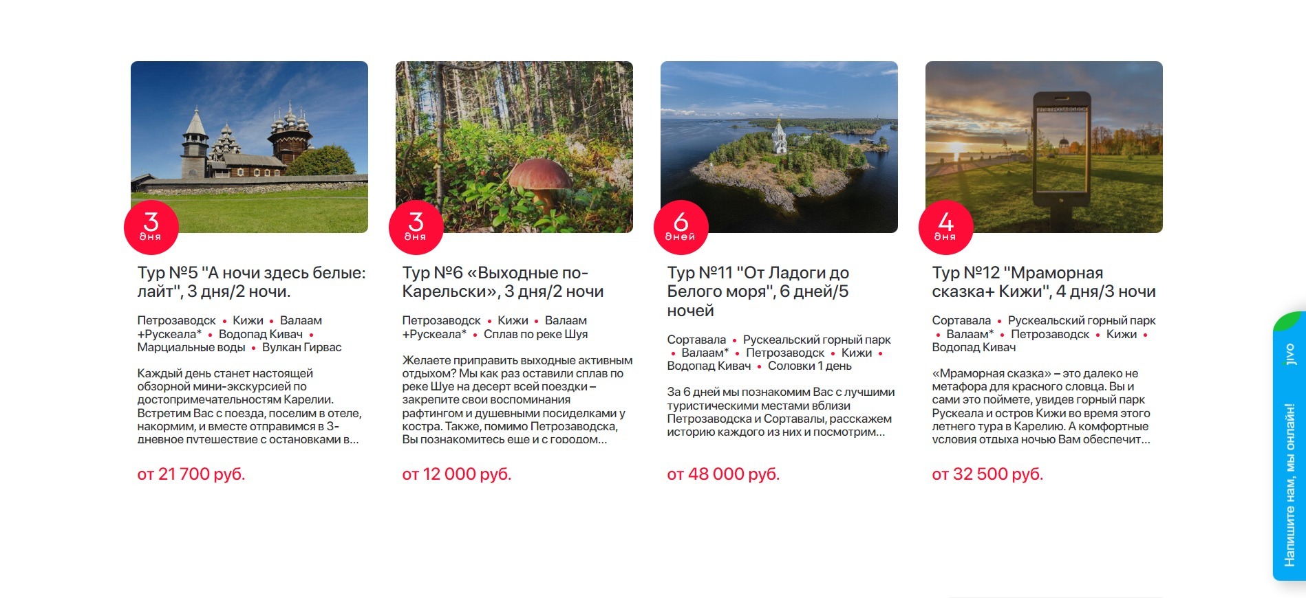 Карелочка - крупная туристическая компания, оказывающая услуги по продаже туров и экскурсий на территории Республики Карелия.