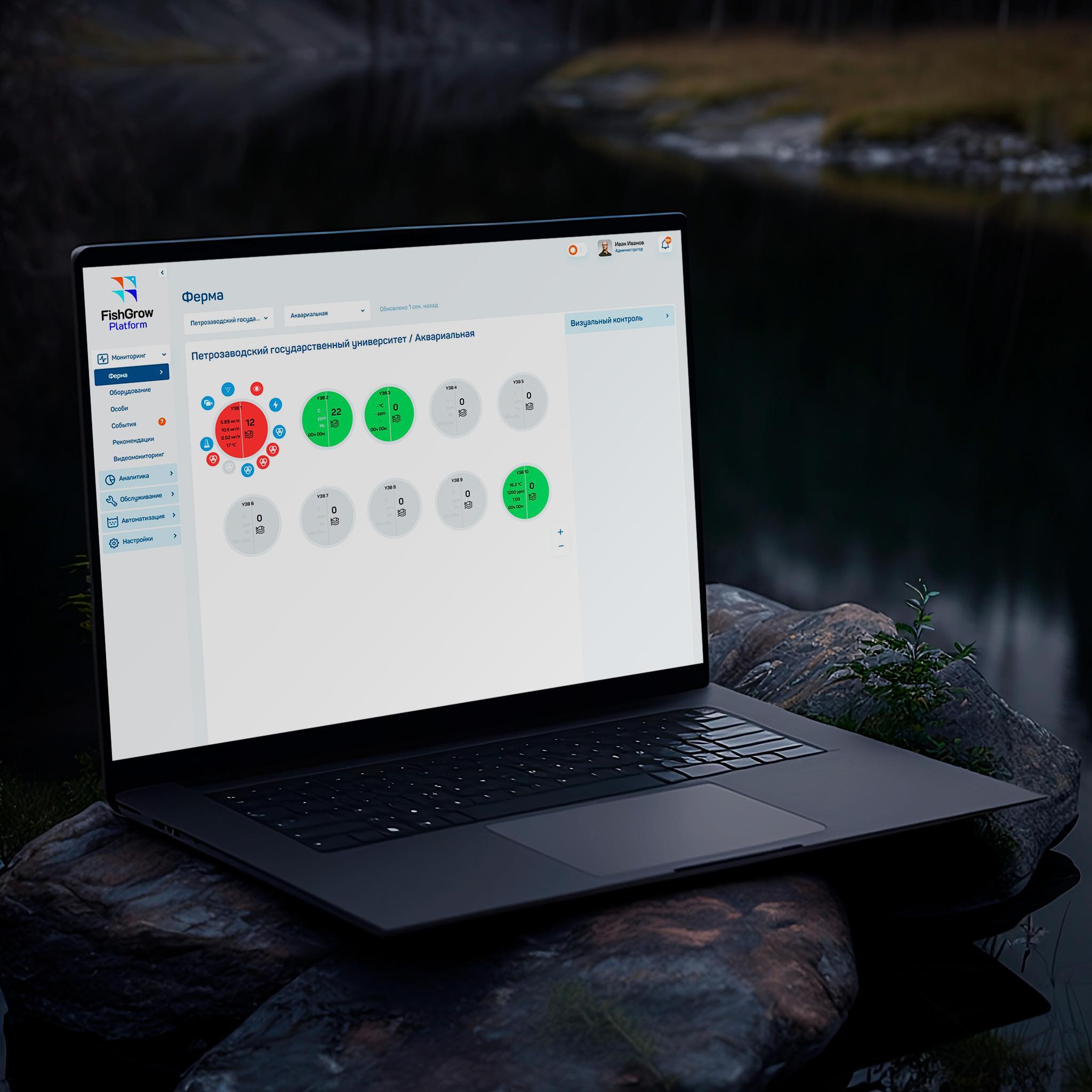 Установка и монтаж комплектов измерительного оборудования (термооксиметры, датчики кислотности) в цеху рыбоводческого предприятия, подключение к ПАК FishGrow Platform.